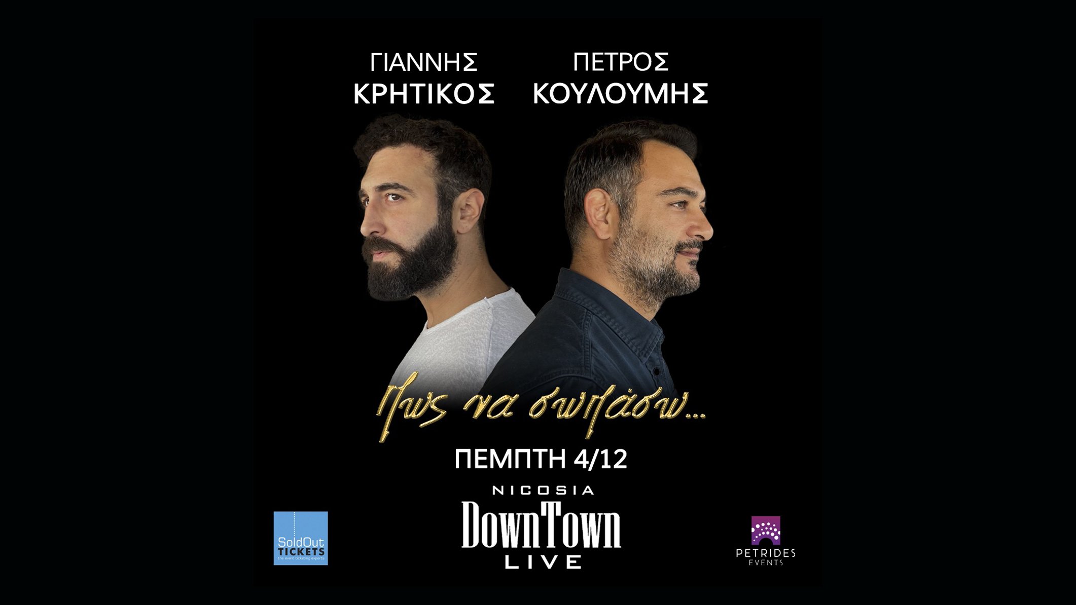 Γιάννης Κρητικός και Πέτρος Κουλουμής στη μουσική παράσταση “Πως να σωπάσω”. Πόρτες Ανοίγουν: 20:00 Ώρα Έναρξης: 21:00