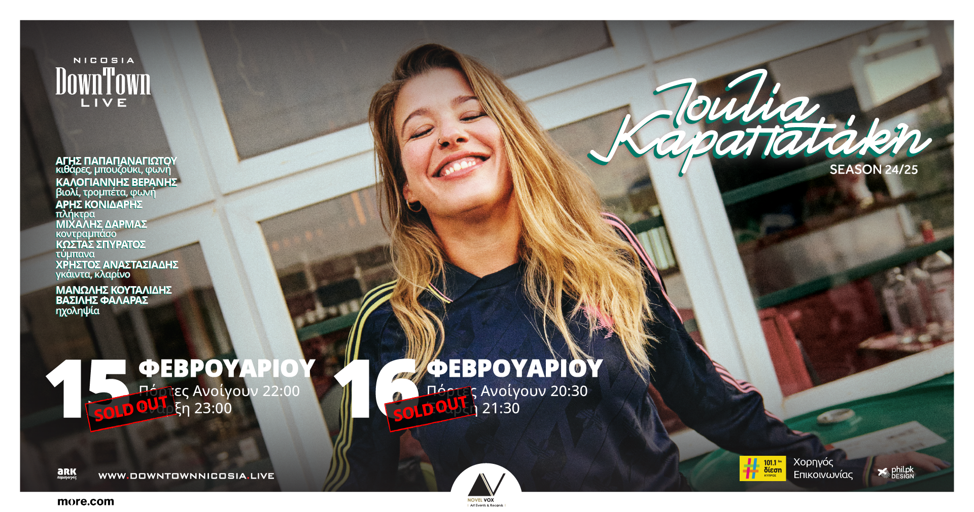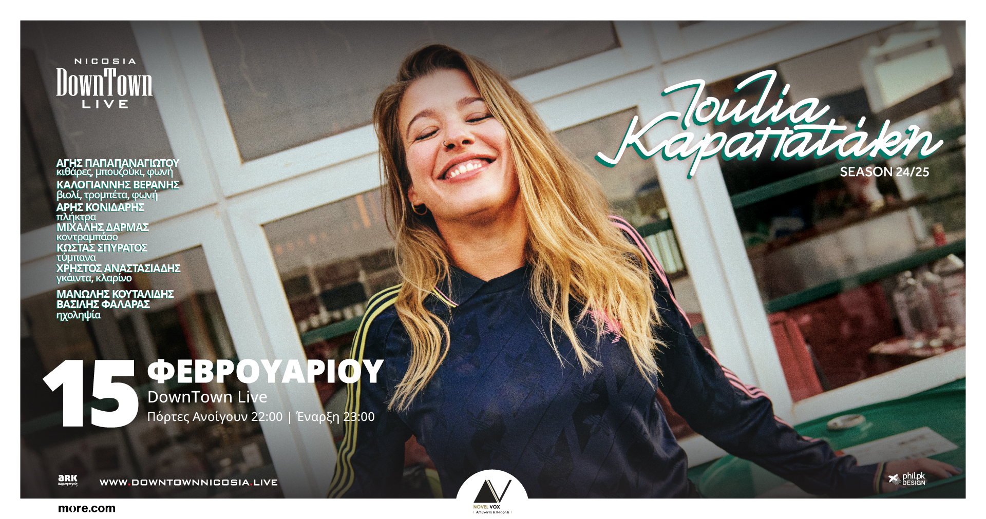 Οι πόρτες ανοίγουν στις 20:30. Έναρξη συναυλίας στις 21:30
